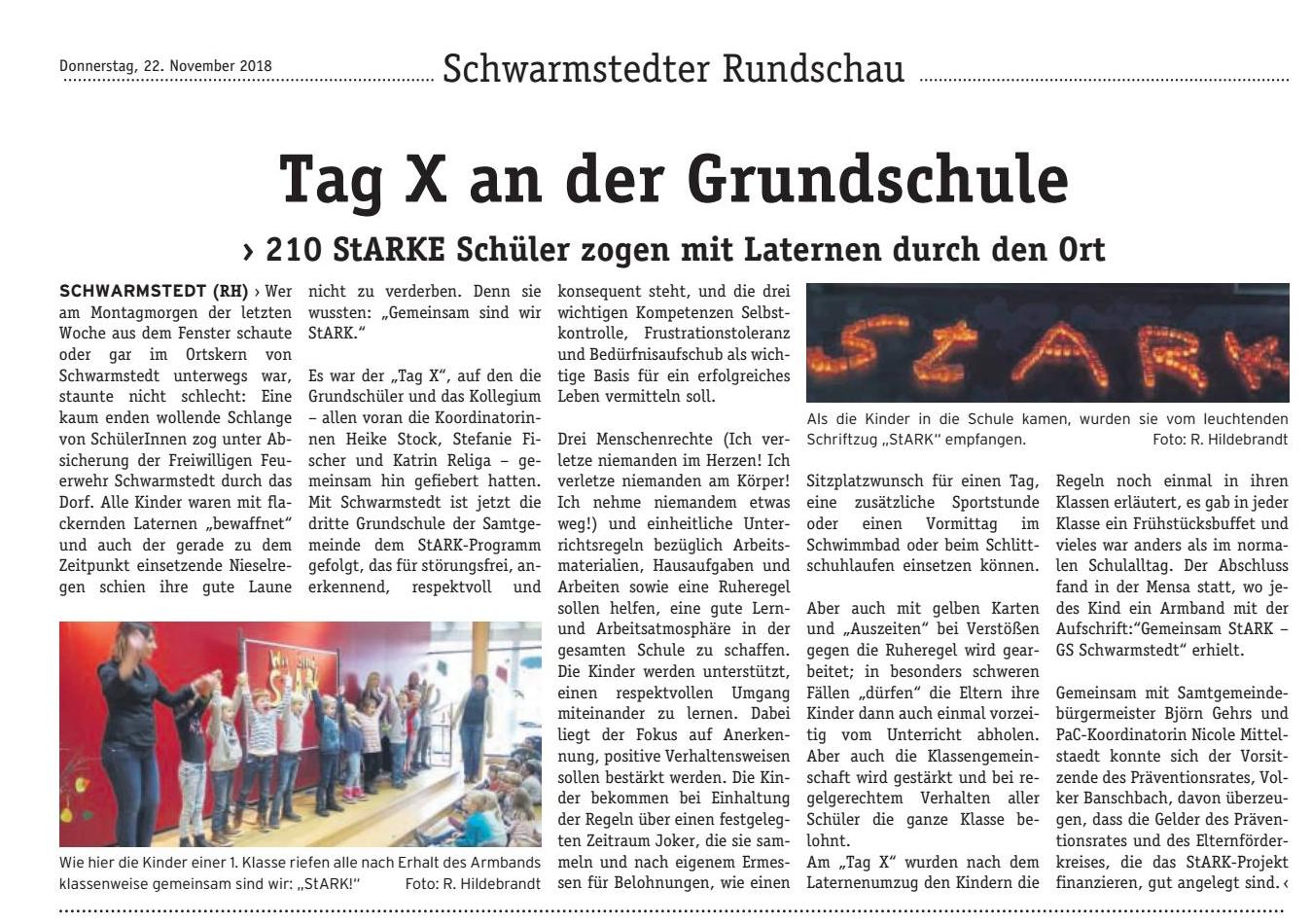Störungsfrei, Anerkennend, Respektvoll und Konsequent. Kurz und knapp StARK. So heißt das Programm zum Sozialen Lernen für welches sich die Grundschulen Schwarmstedt, Bothmer und Buchholz im Rahmen von PaC – Prävention als Chance entschieden haben.