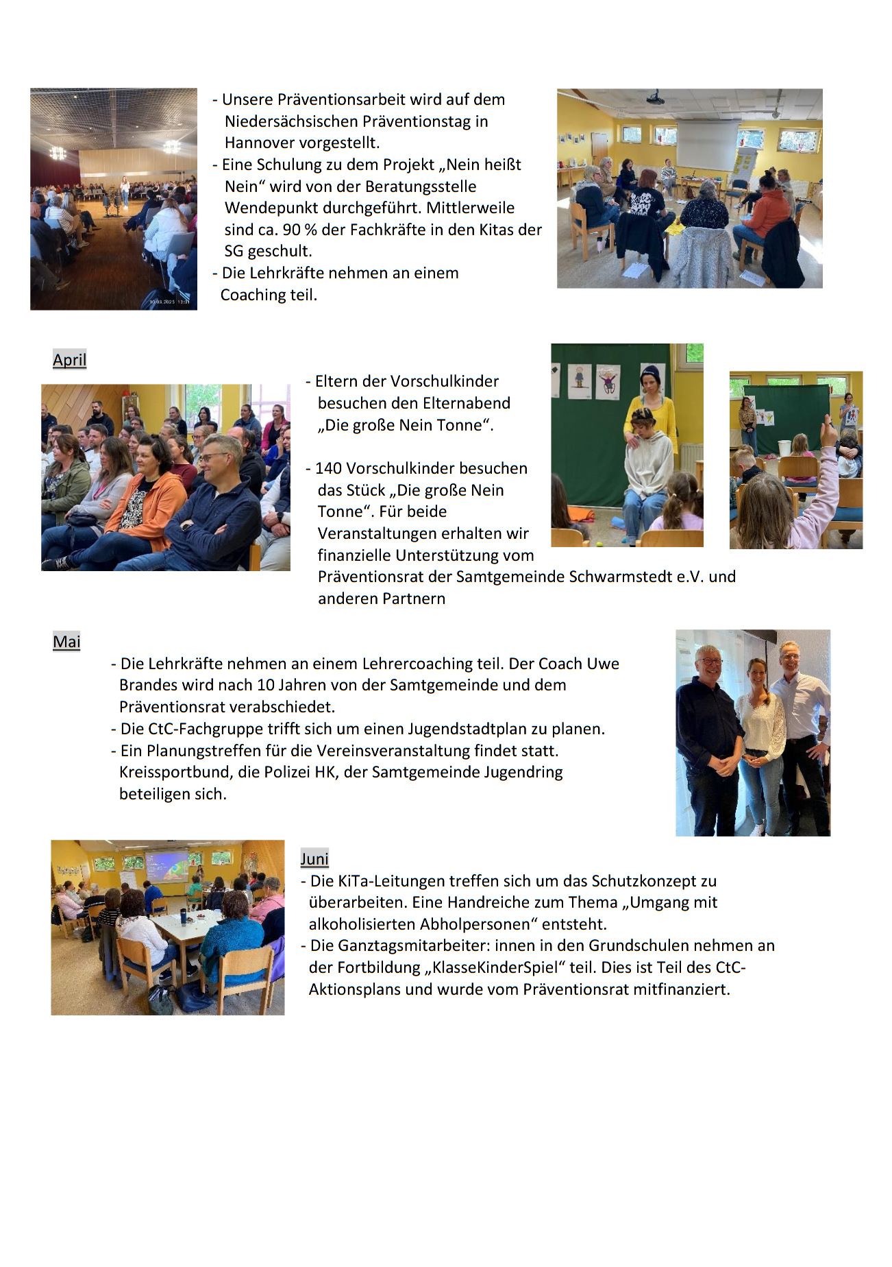 pac-aktuell-2024-11-zehn Prävention gab es seit Jahrzehnten in Schwarmstedt; immer einmal wieder, oft anlassbezogen und punktuell. Ein „Runder Tisch“ befasste sich dann schon systematischer mit Drogenproblematiken und Mitglieder holten die Ausstellung „ErLeben ohne Drogen“ des Landeskriminalamts und mehrere Go‐Sports‐Veranstaltungen in die Samtgemeinde.